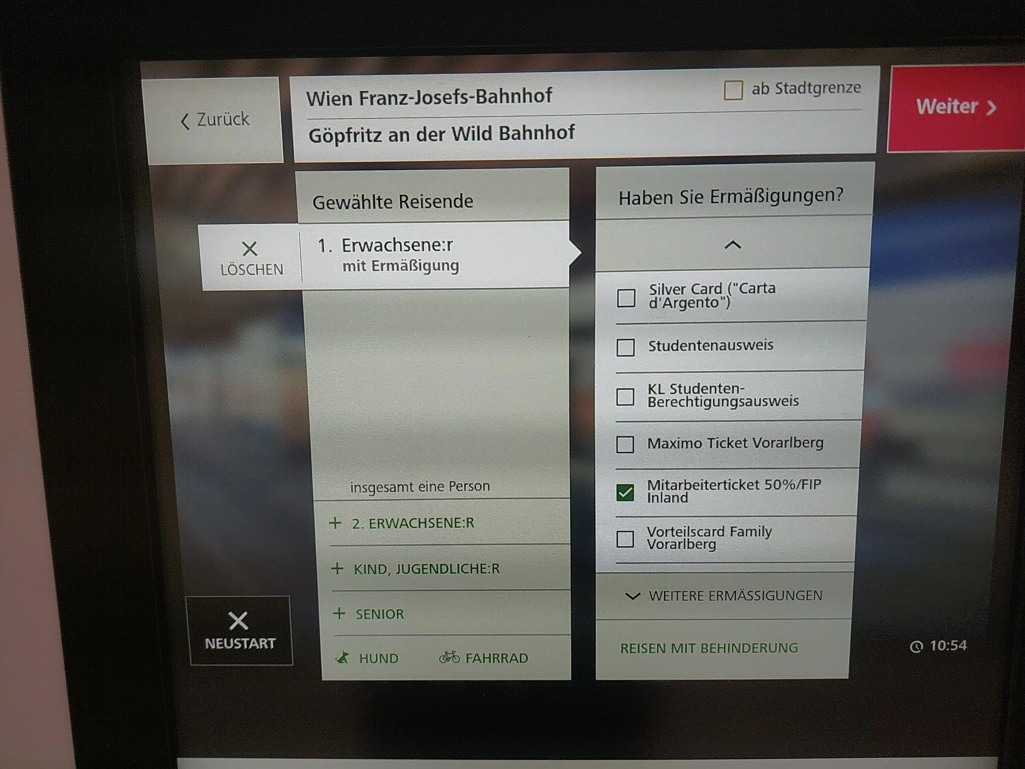 FIP 50 Fahrkarten am ÖBB Fahrkartenautomaten